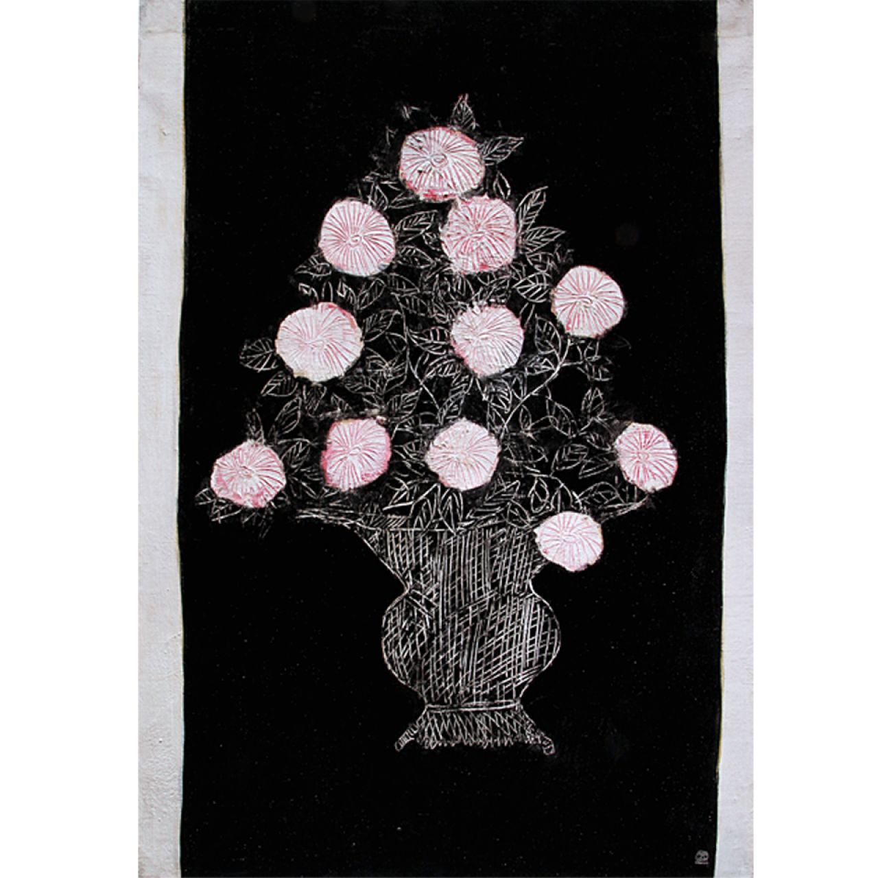 〓常玉·最贵中国画家·出版〓版画 《黑底净白粉菊》