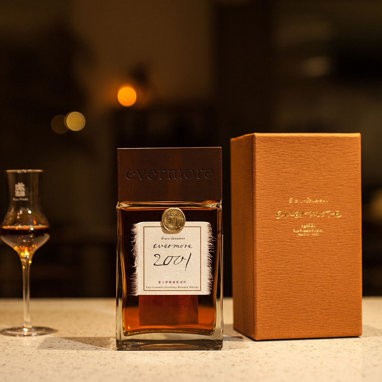 本樽拍品是一瓶来自日本麒麟公司的富士御殿场蒸馏所21年经典限量版威士忌,发布于2001年。采用21年以上的麦芽威士忌原酒与21年以上的谷物威士忌原酒相互融合在一起,绝对的宝石级美酒。清爽令人印象深刻,难以置信的平衡与温和,由于是限量发布,在国内市场上非常罕见。Evermore系列作品数量有限,在20世纪的末端1999年首次在日本推出第一款Evermore1999,一直持续发布到21世纪的Evermore2005结束,可谓是‘世纪之交的绝唱’。每一款都是在富士御殿场蒸馏所长期成熟的最佳本土Genshu麦芽制成。酒厂声称,每个年份的酒款风味都是独一无二的,为品饮爱好者提供个性体验的绝佳机会。