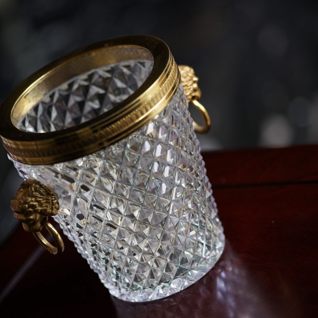 - 法国古董兽耳鎏金水晶冰桶/冷酒器