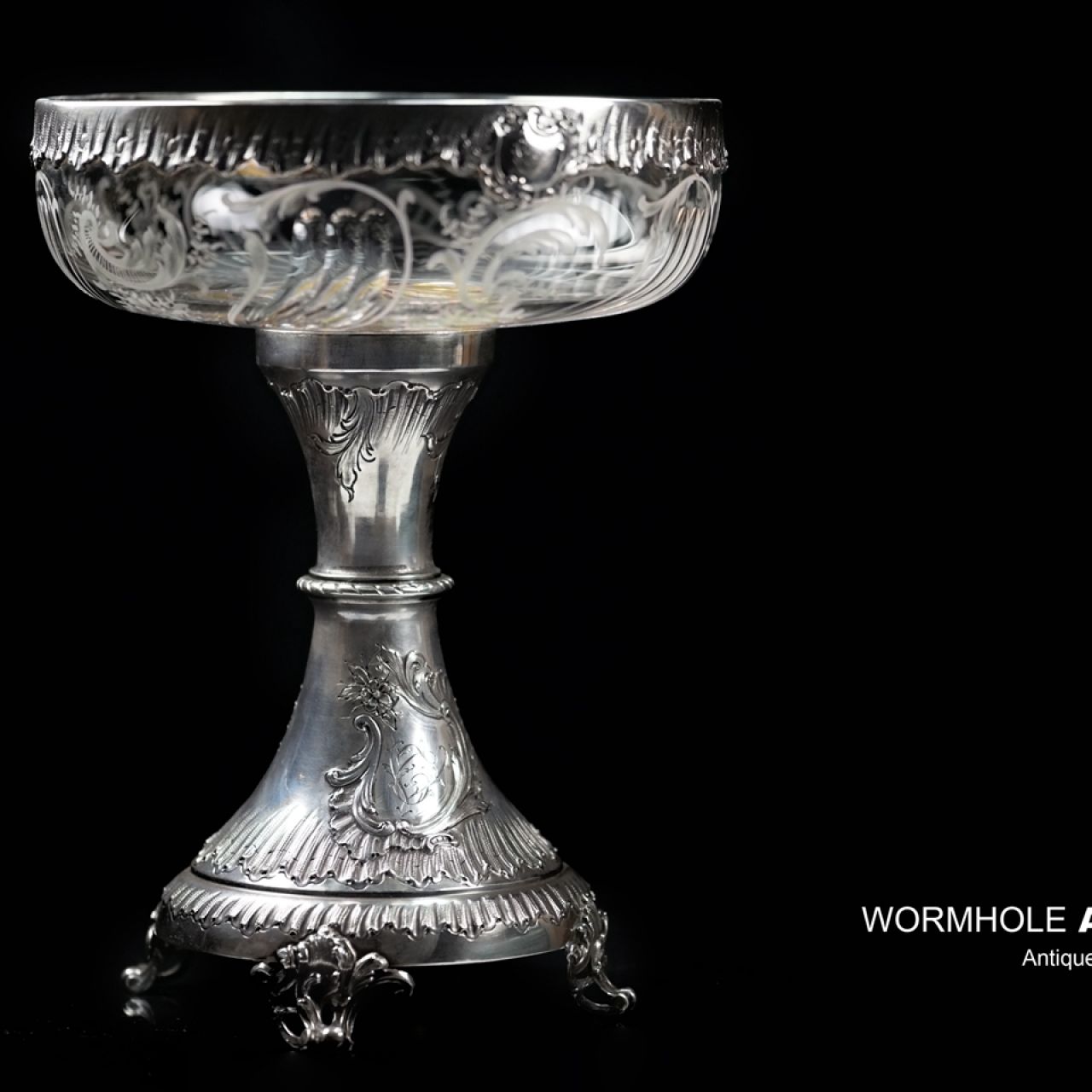 鉴赏:收藏级法式高足盘,采用高品质水晶玻璃与纯银结合制成,刻画细腻,盘沿装饰着水波纹,水晶部分装饰着切割磨制花纹,气宇不凡。