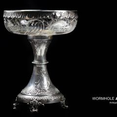 名称: 法国纯银镶嵌切割水晶玻璃大型高足盘