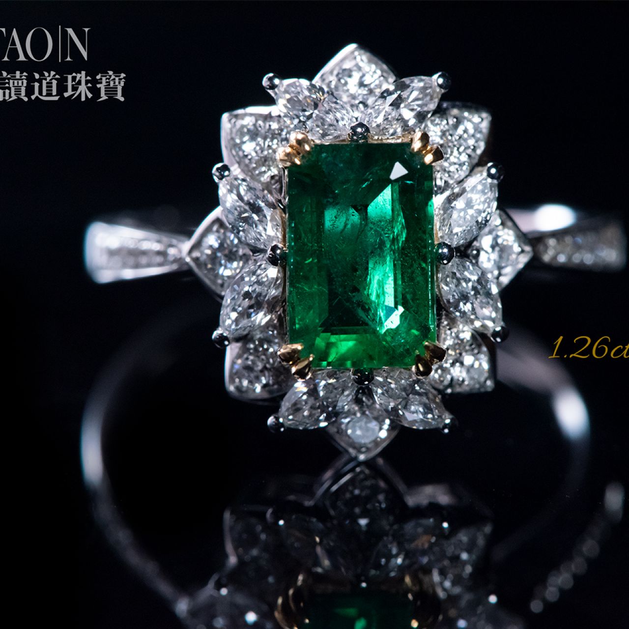 品名:1.26ct Vivid green 祖母绿戒指