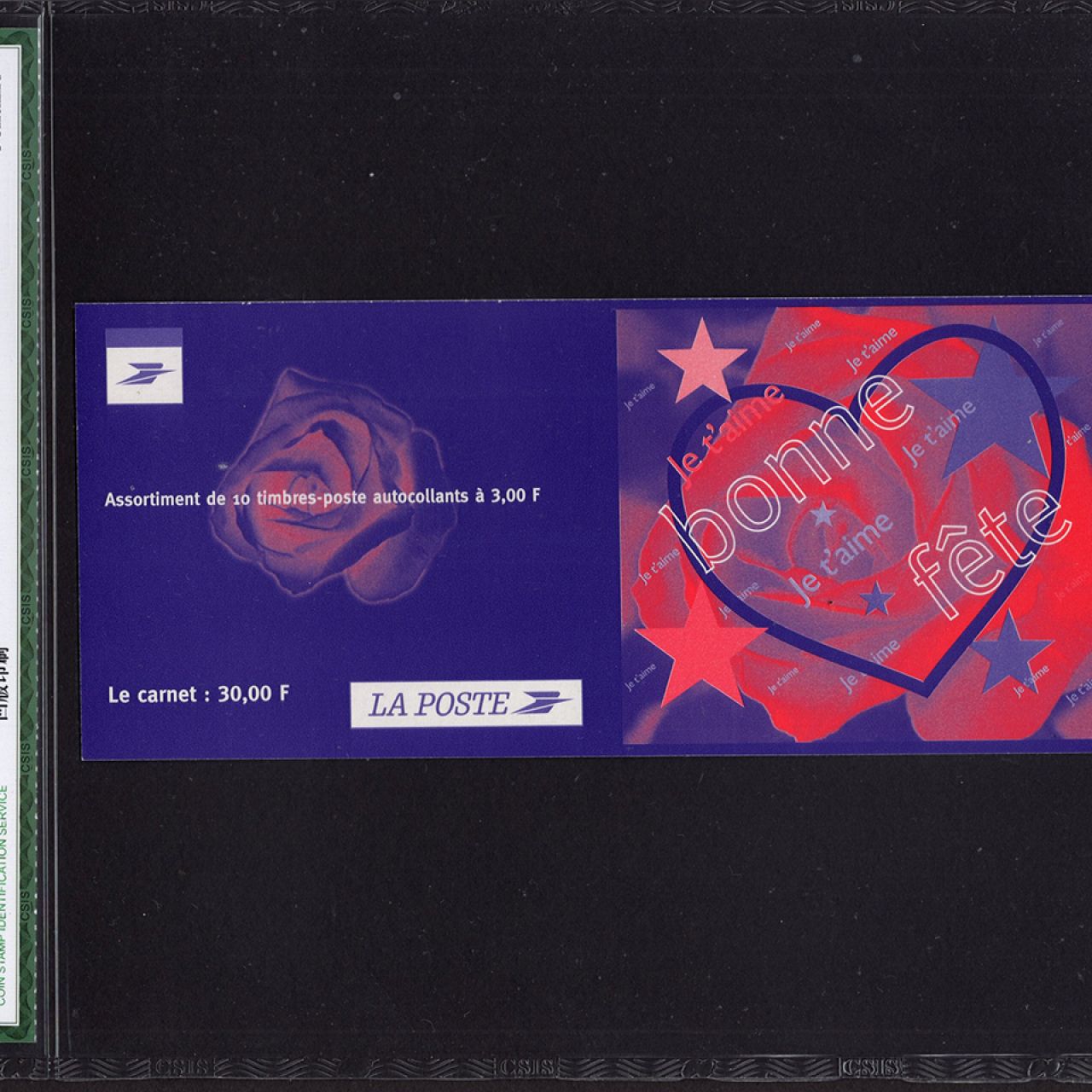 1999年法国邮政首次发行一套两枚的心形邮票:《我爱你》和《玫瑰》。从上市到撤售就一个月时间,但却取得巨大成功。一颗颗红心伴着一封封爱意绵绵的情书,拉近了情人的心,加深了恋人的情。