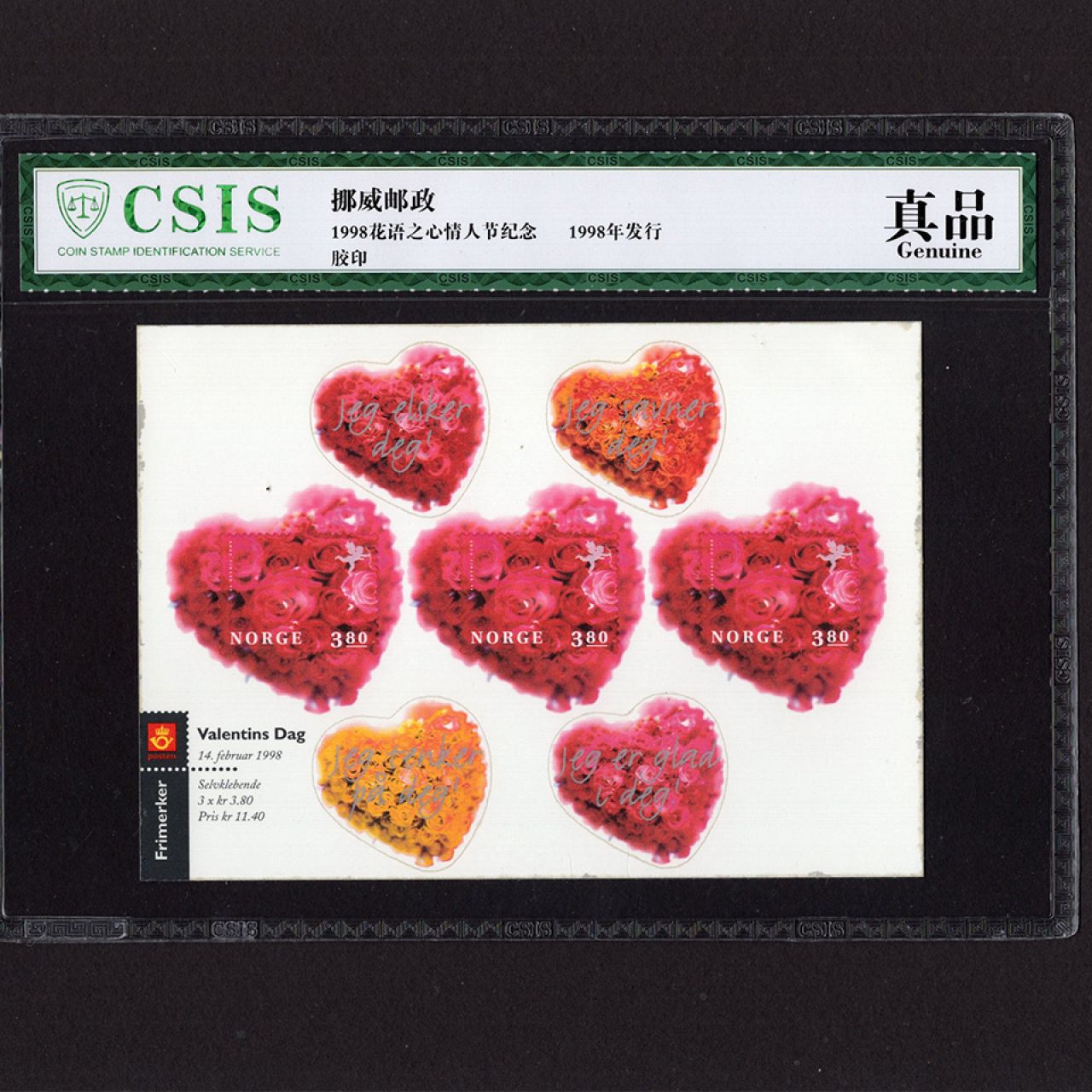 邮票设计非常漂亮,七簇以玫瑰花组成的花束桃心,浓浓爱意,馈赠佳品